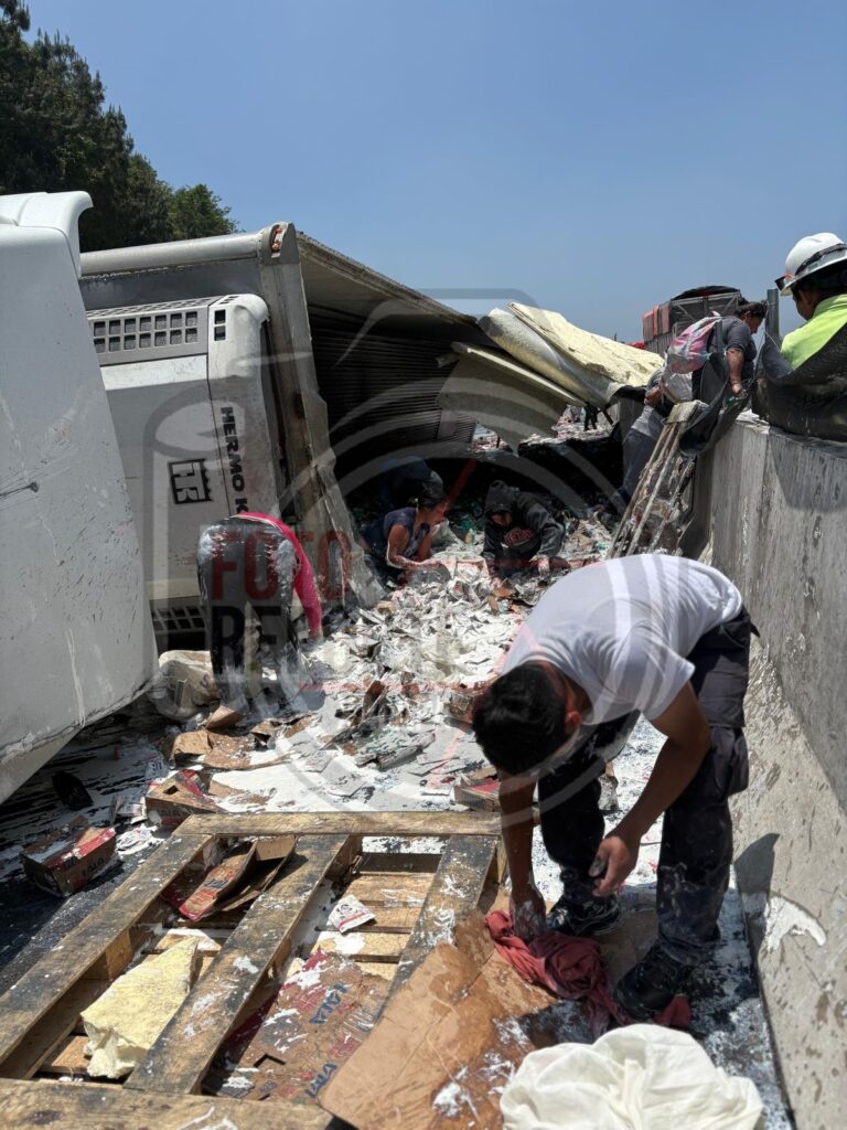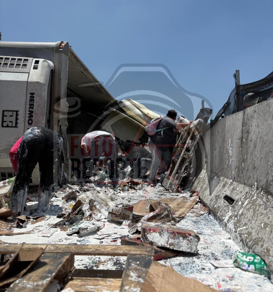 De acuerdo con los primeros reportes, el percance involucró a un tráiler tipo termo de la empresa Grupo Lala, el cual transportaba cajas de leche. Tras la volcadura, habitantes del lugar arribaron al sitio y comenzaron a sustraer la mercancía, llevándose los productos lácteos de manera impune.