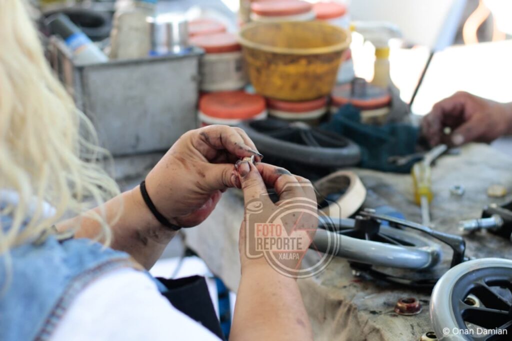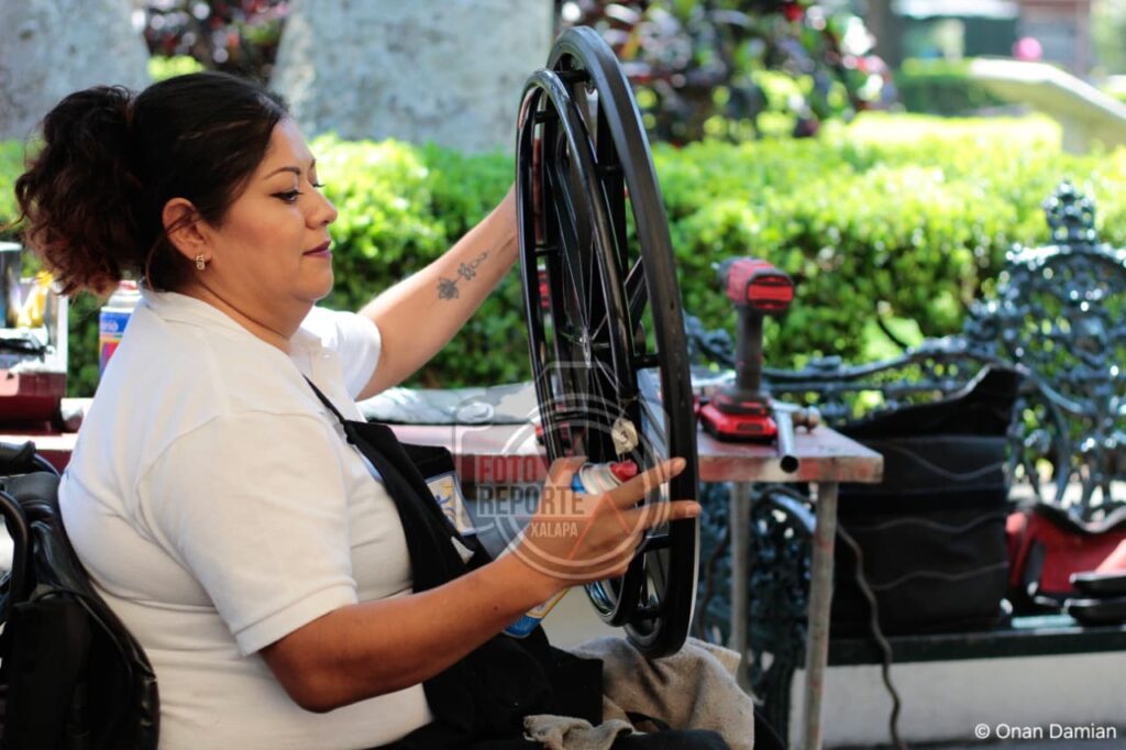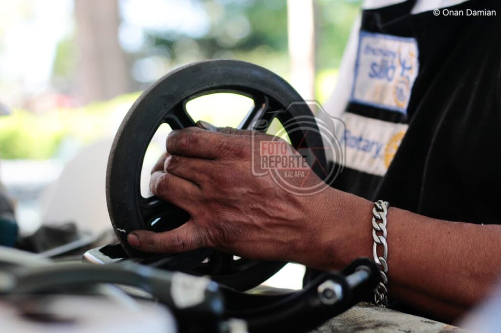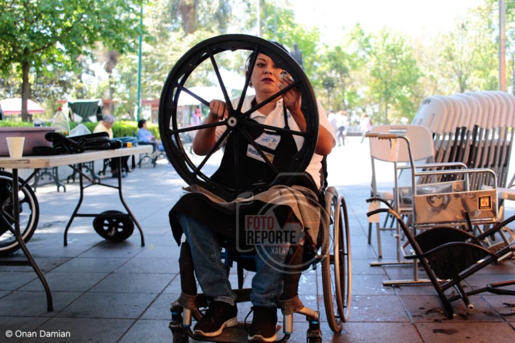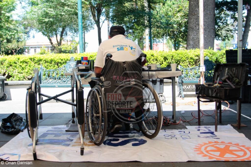 Xalapa, Ver., 28 de abril de 2026.- Con el objetivo de mejorar la movilidad y calidad de vida de personas con discapacidad, el Club Rotario Manantiales puso en marcha una jornada de reparación de sillas de ruedas en la explanada del Parque Juárez, donde durante tres días se brindará mantenimiento integral a estos aparatos a bajo costo e incluso con apoyo para quienes no puedan cubrir el servicio.