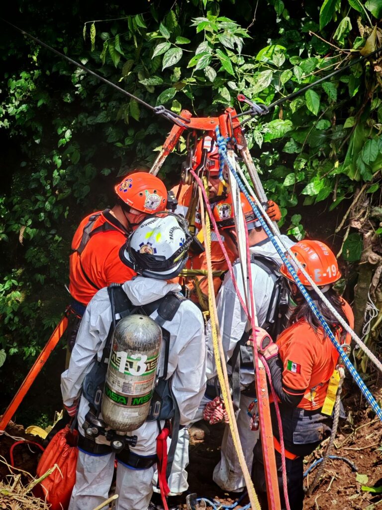 De acuerdo con los reportes, dos elementos especializados descendieron hasta el fondo de la gruta, donde realizaron la inmovilización del cuerpo. Posteriormente, fue ascendido mediante un sistema de poleas, utilizando más de tres mil metros de cuerda y equipos de respiración autónoma, debido a la falta de oxígeno en el interior de la cavidad.