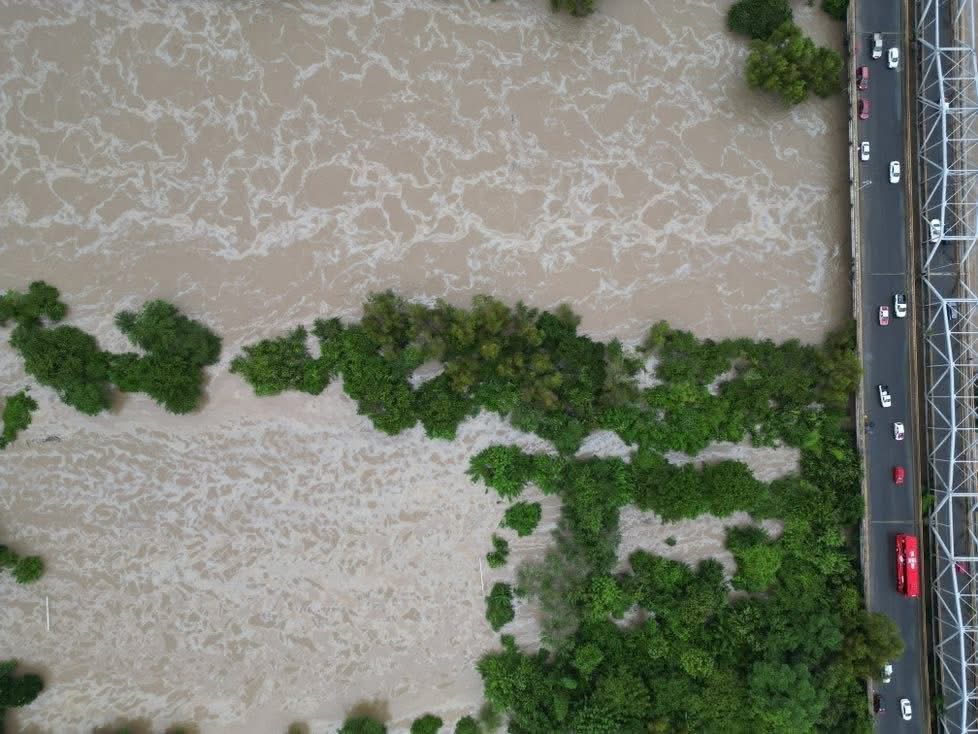 Poza Rica, Ver.,09 de octubre de 2025.-Las fuertes precipitaciones registradas durante las últimas horas han elevado considerablemente el nivel del río Cazones, que esta mañana se encuentra cerca de su punto crítico de desbordamiento.