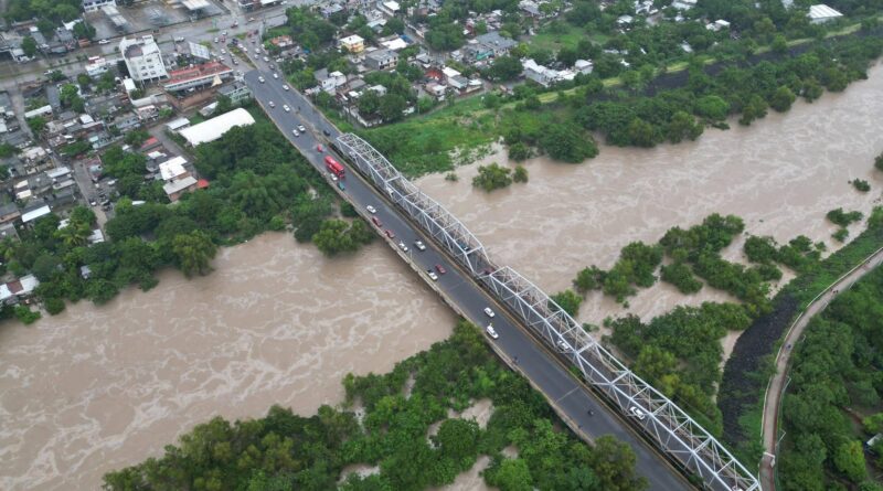 Poza Rica, Ver.,09 de octubre de 2025.-Las fuertes precipitaciones registradas durante las últimas horas han elevado considerablemente el nivel del río Cazones, que esta mañana se encuentra cerca de su punto crítico de desbordamiento.