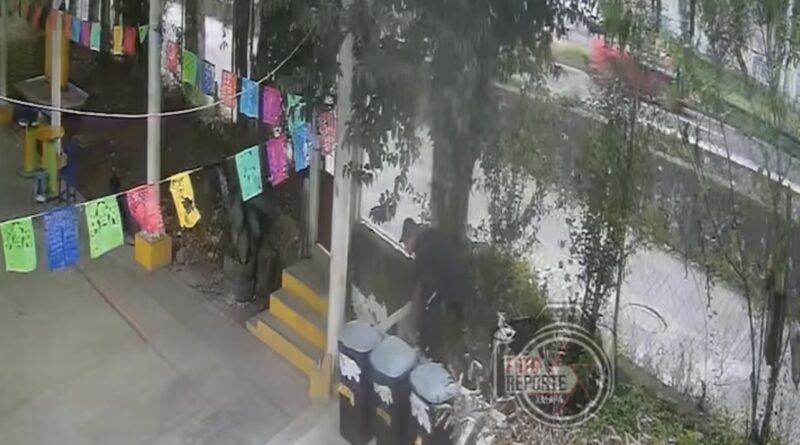 Banderilla.-14-noviembre-2025.-La comunidad escolar de la primaria “Prof. Luis Martínez Murillo” denunció públicamente un acto delictivo ocurrido en sus instalaciones, luego de que un sujeto fuera captado por cámaras de seguridad robando varios botes de basura del plantel.