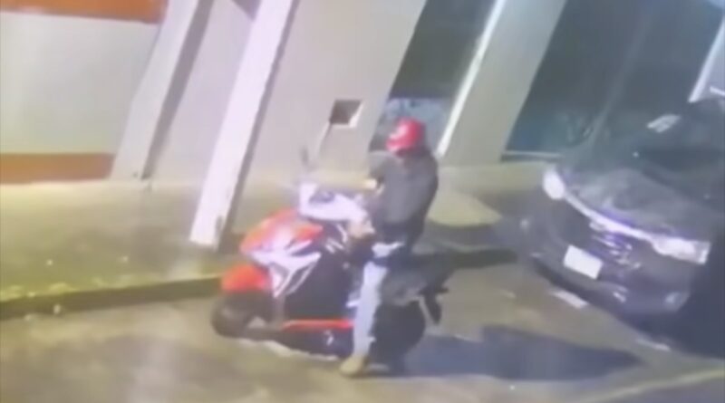 Una cámara de seguridad captó el momento del robo, donde se observa a un sujeto con gorra roja romper el seguro de la motocicleta para posteriormente llevársela apagada.