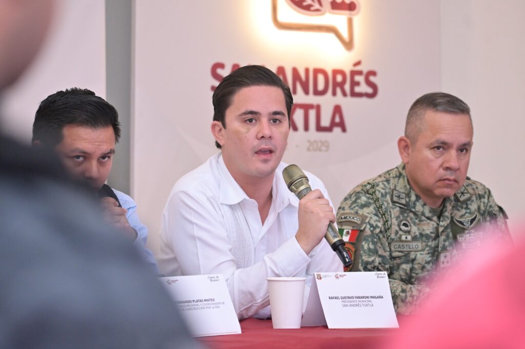 San Andrés Tuxtla, Ver., 9 de febrero de 2026.- Este lunes, el presidente municipal Rafa Fararoni Magaña fue anfitrión de la mesa regional de la paz y seguridad llevada a cabo en Sala de Cabildos de Palacio Municipal.