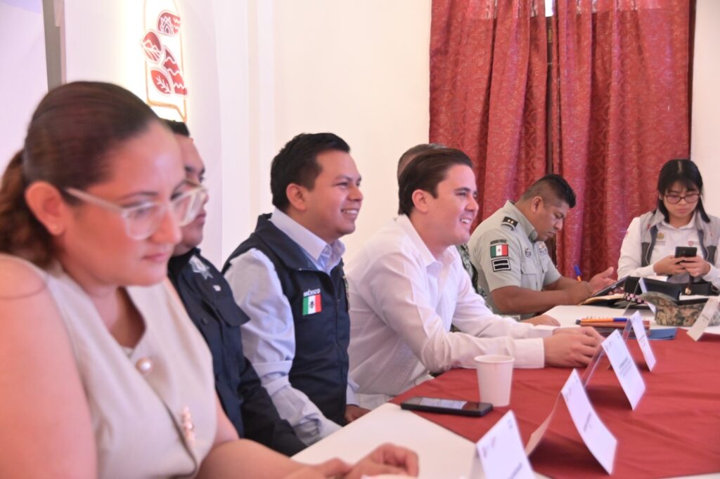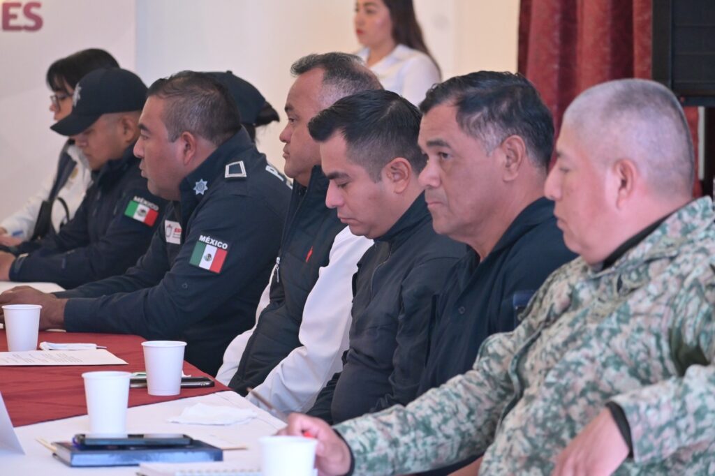 Presente encabezando la reunión con el presidente municipal, la sindica única Gabriela Díaz del Castillo, así como el Lic. Luis Fernando Platas Mateos, secretario técnico regional y Coordinador de las Mesas de Construcción de la Paz y Seguridad.
