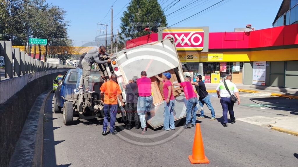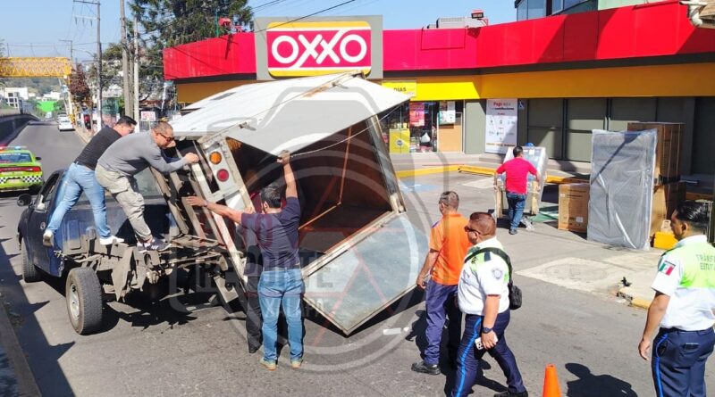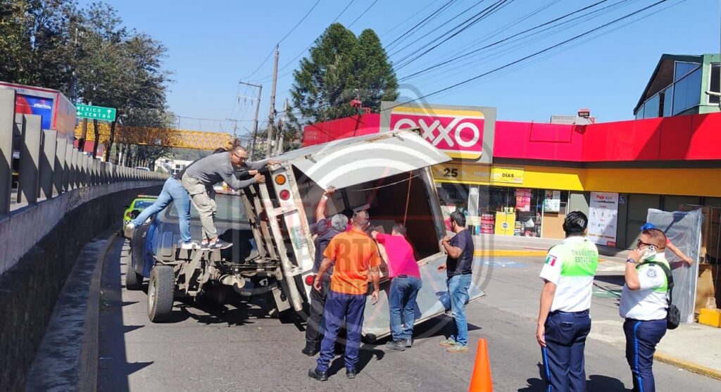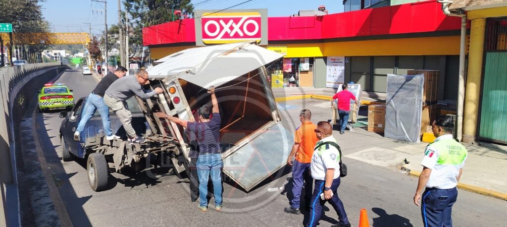 Electrodomésticos era lo que transportaba la unidad siniestrada, situación que obligó al cierre del carril con dirección a Banderilla, generando afectaciones momentáneas a la circulación vehicular en la zona.