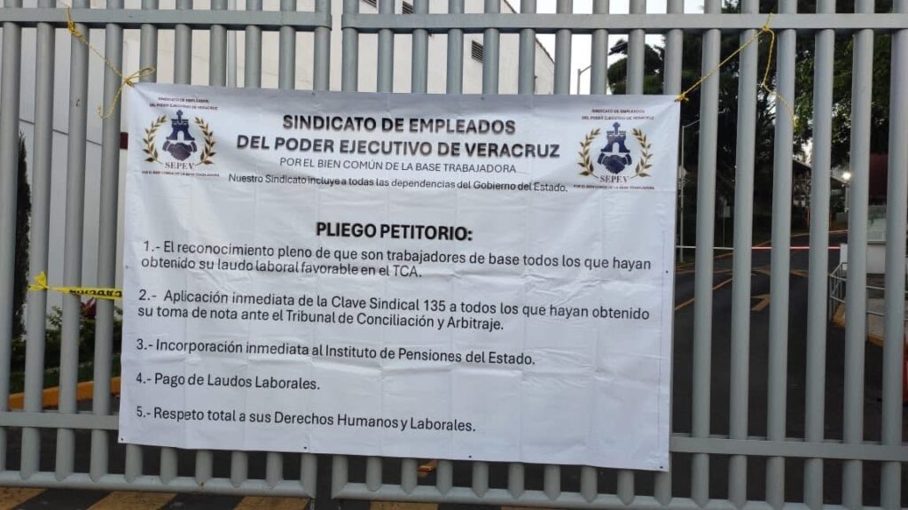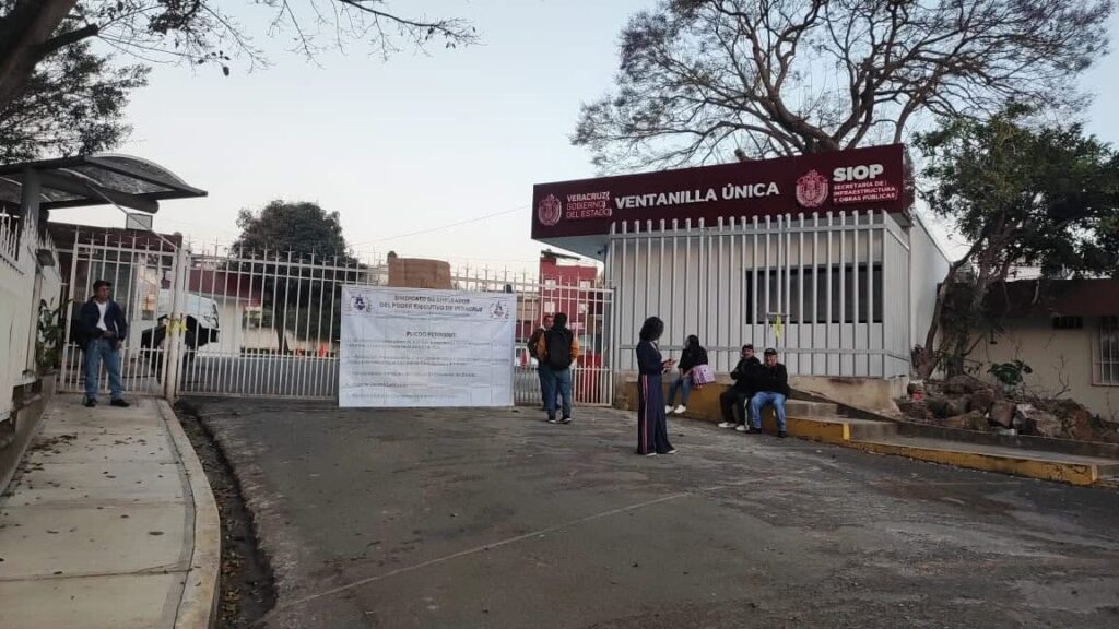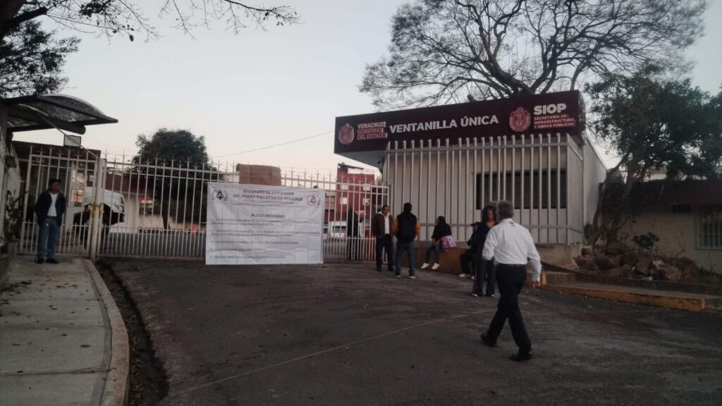 23-marzo-2026.-La inconformidad por la falta de atención a sus derechos laborales llevó a integrantes del Sindicato de Empleados del Poder Ejecutivo de Veracruz a tomar las instalaciones de la Secretaría de Infraestructura y Obras Públicas (SIOP), donde exigieron soluciones inmediatas a sus demandas.