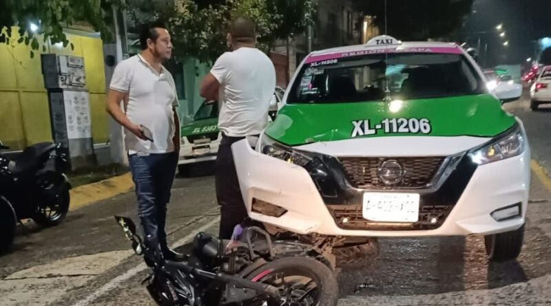 De acuerdo con los primeros reportes, la motociclista se desplazaba con dirección hacia la terminal CAXA cuando el taxi con número económico XL-11206 la golpeó por alcance. Tras el impacto, la moto quedó incrustada en la parte frontal del vehículo de alquiler.