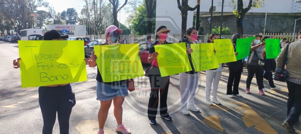 Xalapa.,24-diciembre-2025.-Trabajadores del IMSS-Bienestar bloquearon la avenida Adolfo Ruiz Cortines, a la altura del Centro de Alta Especialidad “Dr. Rafael Lucio”, la mañana de este martes, como medida de protesta ante diversas irregularidades laborales.