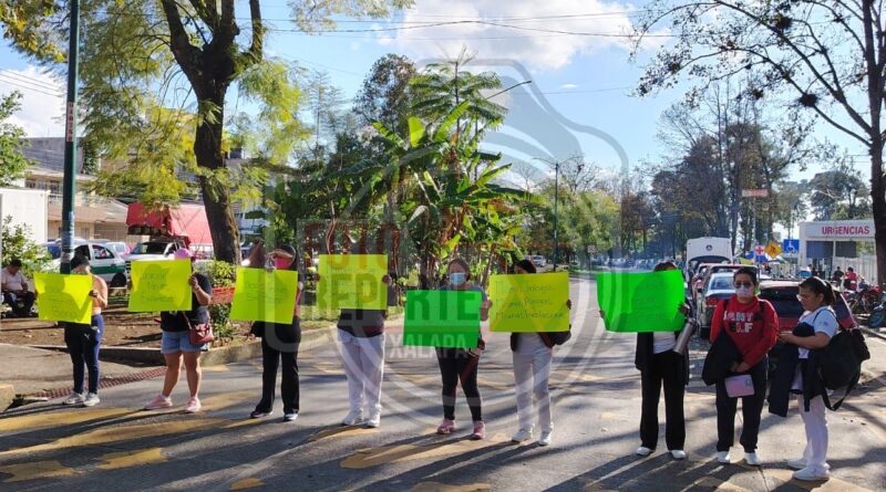 Xalapa.,24-diciembre-2025.-Trabajadores del IMSS-Bienestar bloquearon la avenida Adolfo Ruiz Cortines, a la altura del Centro de Alta Especialidad “Dr. Rafael Lucio”, la mañana de este martes, como medida de protesta ante diversas irregularidades laborales.