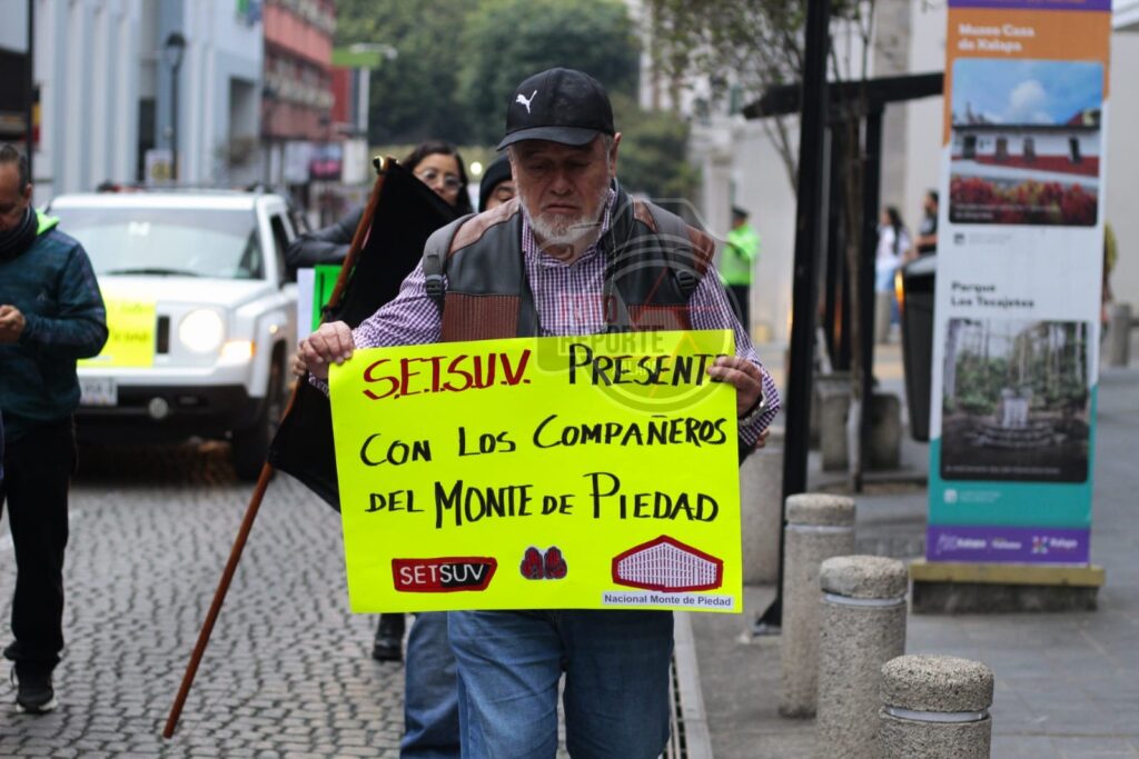 Xalapa, Ver., 29 de enero 2026.– El Sindicato del Nacional Monte de Piedad, con apoyo de integrantes de Setsuv, realizaron una marcha pacífica la tarde de este jueves, que partió de la sucursal del monte de piedad en los Sauces y concluyó en Plaza Lerdo, como parte de las acciones emprendidas luego de casi cuatro meses de huelga.