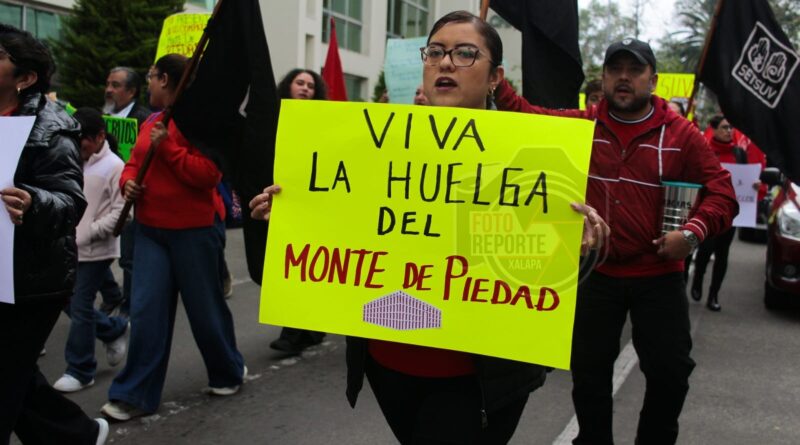 Xalapa, Ver., 29 de enero 2026.– El Sindicato del Nacional Monte de Piedad, con apoyo de integrantes de Setsuv, realizaron una marcha pacífica la tarde de este jueves, que partió de la sucursal del monte de piedad en los Sauces y concluyó en Plaza Lerdo, como parte de las acciones emprendidas luego de casi cuatro meses de huelga.