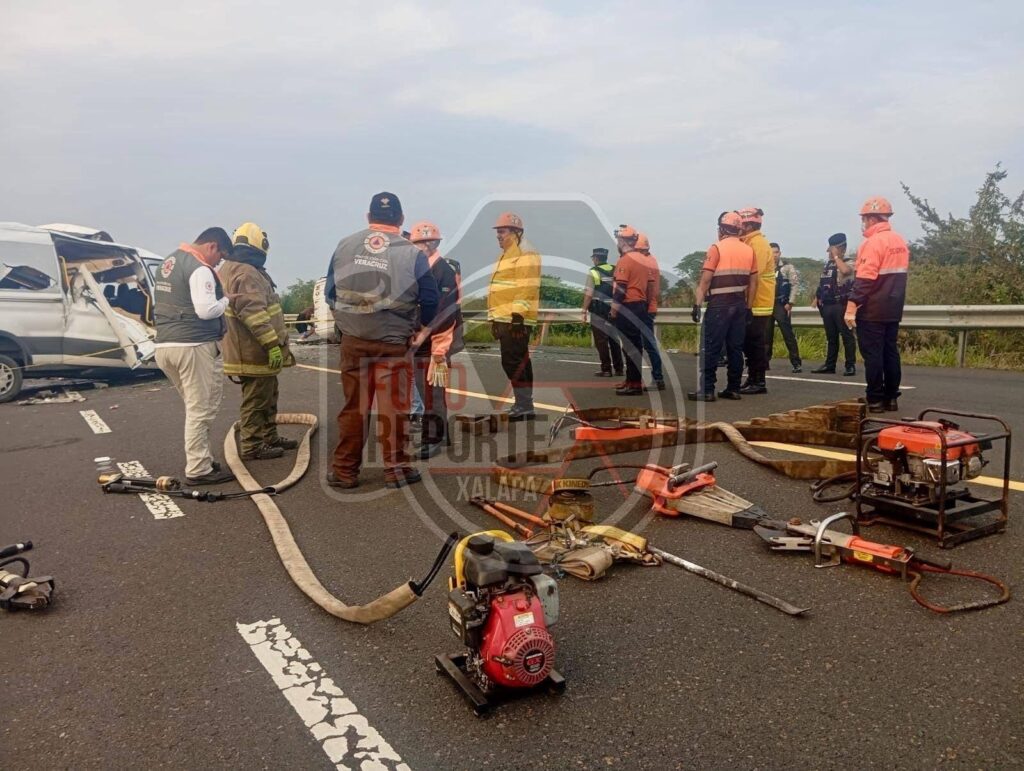 La gravedad del impacto requirió la movilización urgente del Escuadrón Nacional de Rescate, Delegación Xalapa. Los elementos de esta corporación realizaron el trabajo utilizando equipo hidráulico especializado para cortar la carrocería y lograr la extracción de los cuerpos que quedaron prensados.