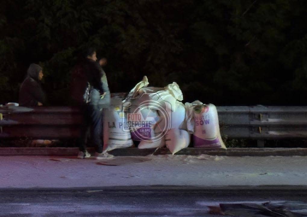 Tras el percance, se registraron actos de rapiña en la zona, donde lugareños aprovecharon para robar costales de azúcar que transportaba la pesada unidad, una práctica cada vez más recurrente en este tramo carretero.