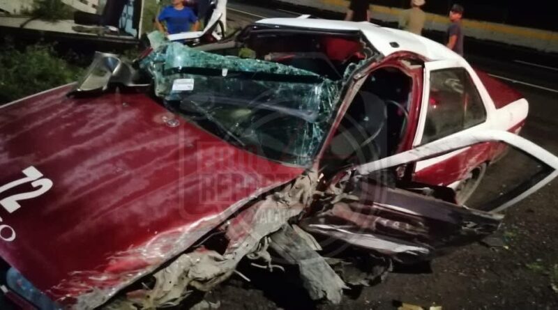 Emiliano Zapata, Ver. 10/Octubre/2025.- La noche de este viernes, un tráiler impactó a un taxi cuando circulaba sobre el libramiento de Rinconada, muy cerca del puente Ídolos; la unidad de alquiler terminó fuera del camino y el vehículo pesado huyó.