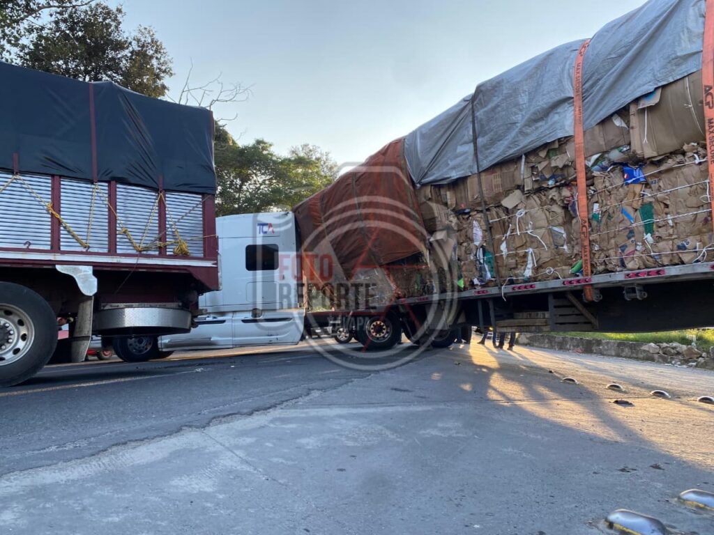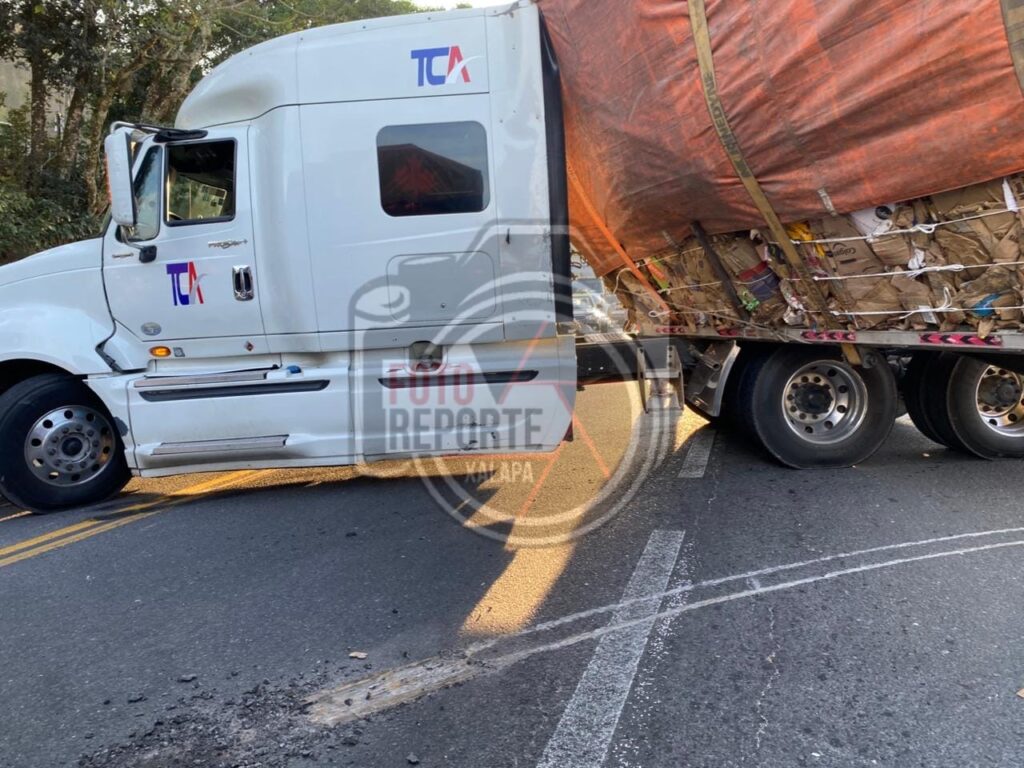 Tráiler queda atorado en la carretera Xalapa–Perote