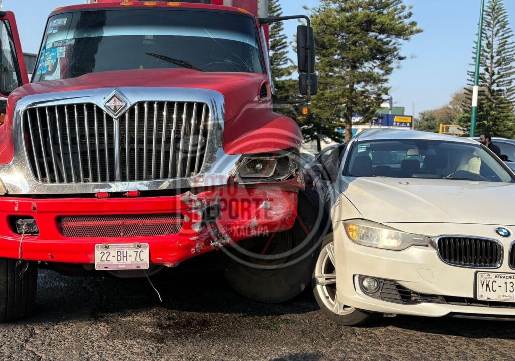 Xalapa, Ver. 28 de abril 2026.- Dos personas resultaron lesionadas luego de que un automóvil BMW fuera impactado por un camión tipo Torton, sobre la lateral de la avenida Lázaro Cárdenas, en la incorporación hacia la avenida 20 de Noviembre con dirección al centro.