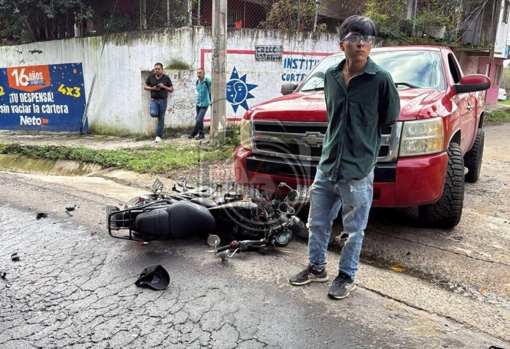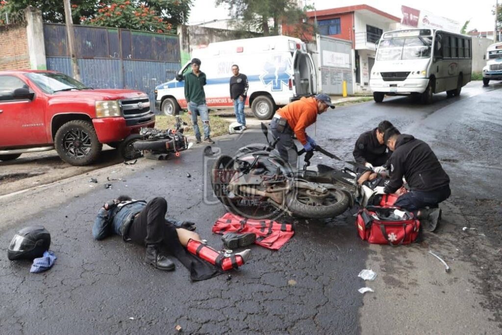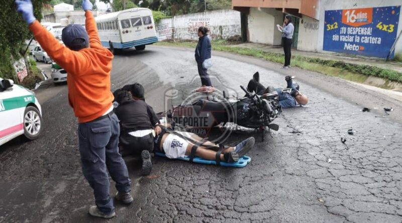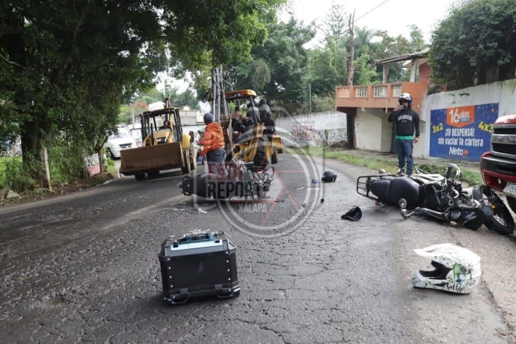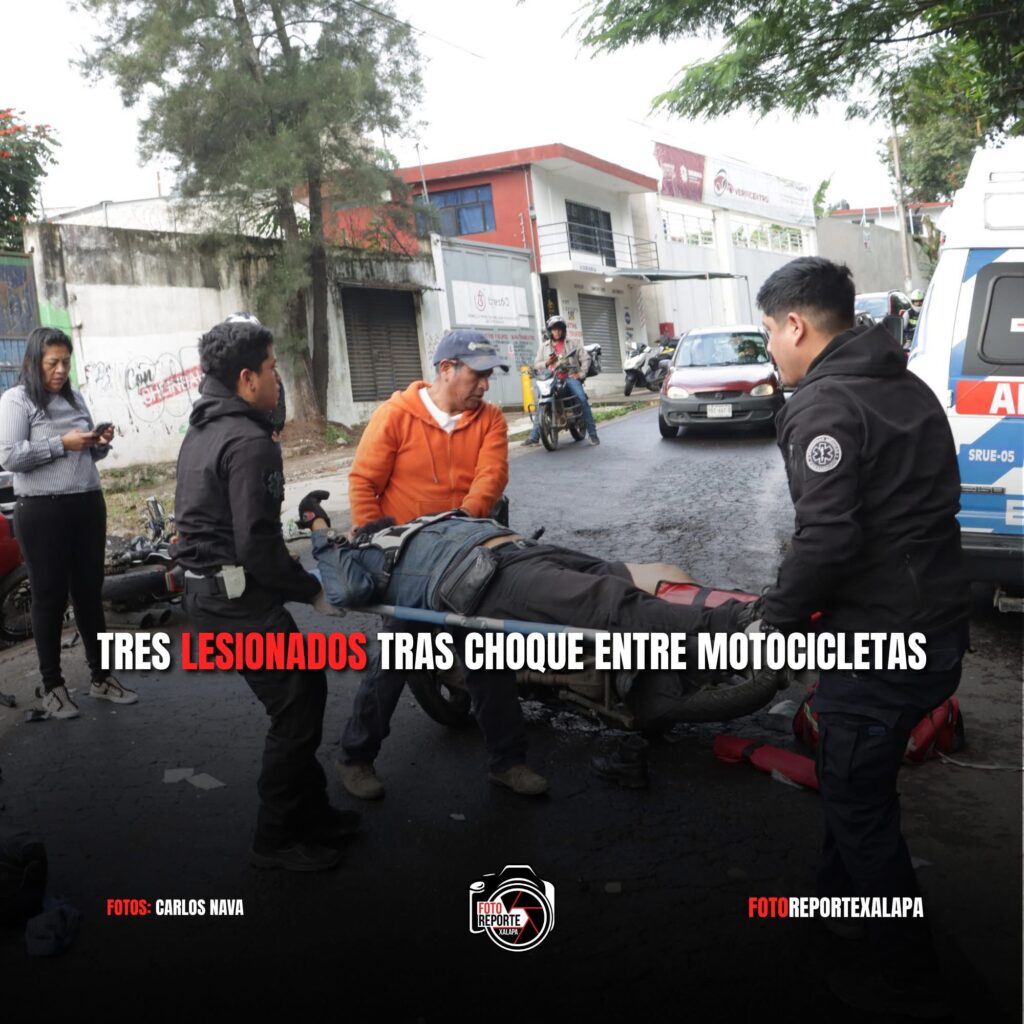 Xalapa, Ver. 29 de septiembre 2025.- Esta mañana se registró un accidente sobre la avenida Chedraui Caram, esquina con la calle Las Flores, con dirección hacia El Castillo, donde tres jóvenes que viajaban en una motocicleta, presuntamente en estado de ebriedad, invadieron carril y chocaron contra otra moto.