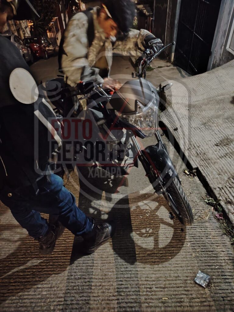 Elementos de la Secretaría de Seguridad Pública de Veracruz aseguraron la motocicleta, la cual fue retirada del sitio por el operador de una grúa y trasladada a un corralón para los trámites correspondientes.