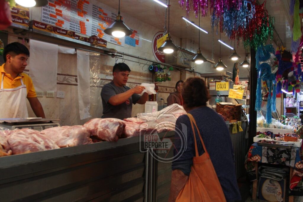 Xalapa, Ver. 24 de diciembre 2025.- A pocas horas de la cena de Nochebuena, la actividad comercial en el mercado Jáuregui, en el centro de Xalapa, se mantiene por debajo de lo esperado, con poca afluencia de compradores que realizan únicamente adquisiciones básicas para la celebración.