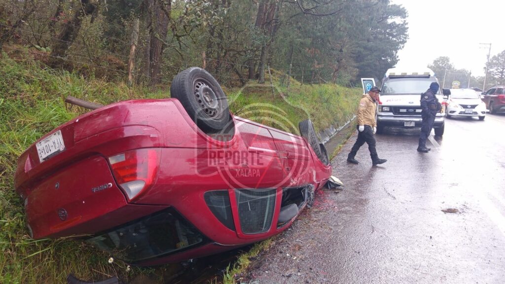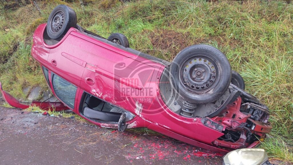 Xalapa, Ver., 22 de febrero de 2026.– La tarde de este domingo se registró una volcadura sobre la carretera Xalapa–Puebla, a la altura de la localidad de La Joya, en el municipio de Acajete, donde un automóvil Chevrolet Corsa, color rojo, terminó fuera de la carpeta asfáltica y con las llantas hacia arriba. El accidente dejó como saldo una persona lesionada.