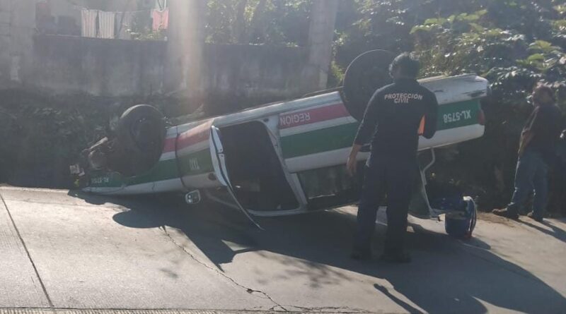 Vuelca taxi en la carretera Xalapa–Misantla; deja una persona lesionada
